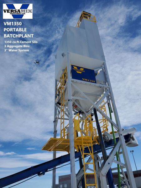 The Versamix 1350 Model Batch Plants are designed and Manufactured at our Facility in Blackfalds, Alberta. The VM1350 offers 1350 cubic feet of cement storage, and 24 ton / 22 tonne aggregate bins. The plant is fully automated with a cement weigh up and 3” metered water system to streamline the batching process efficiently. Our innovative control system can be integrated with any Automation Platform. With very minimal setup time the VM1350 will get your onsite operation up and going to produce concrete on demand with high profitability.